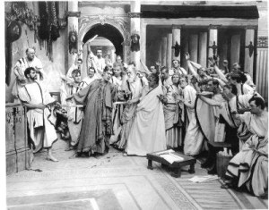 Conspirators arrive at the Senate House, having plotted to kill Caesar.