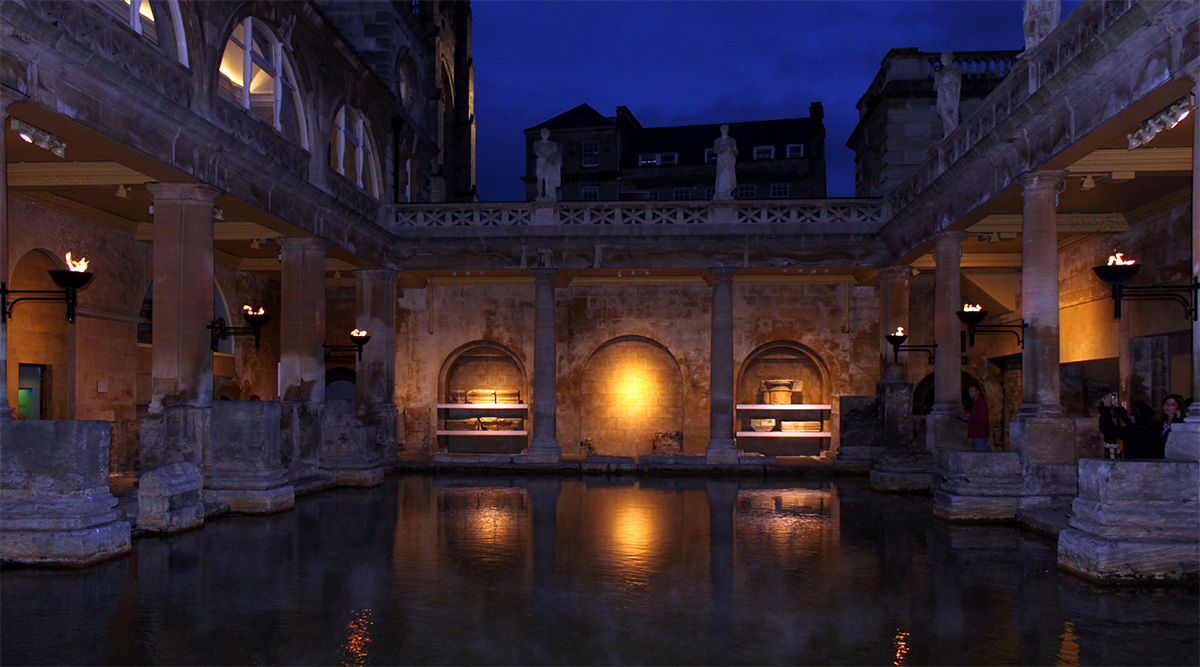 It turns out that Elizabeth visited Bath in the west of England only once in her entire reign of nearly forty-five years, according to the meticulous work of Mary Hill Cole in The Portable Queen (1999). It was a stay of two nights during August 21-23, 1574, as part of her progress. Earlier that summer Oxford had bolted across the Channel to the Continent on an unauthorized trip only to return three weeks later, catching up to her Majesty at Bristol and continuing with her and the royal court to Bath, with its ancient Roman shrines built around natural springs with healing waters: