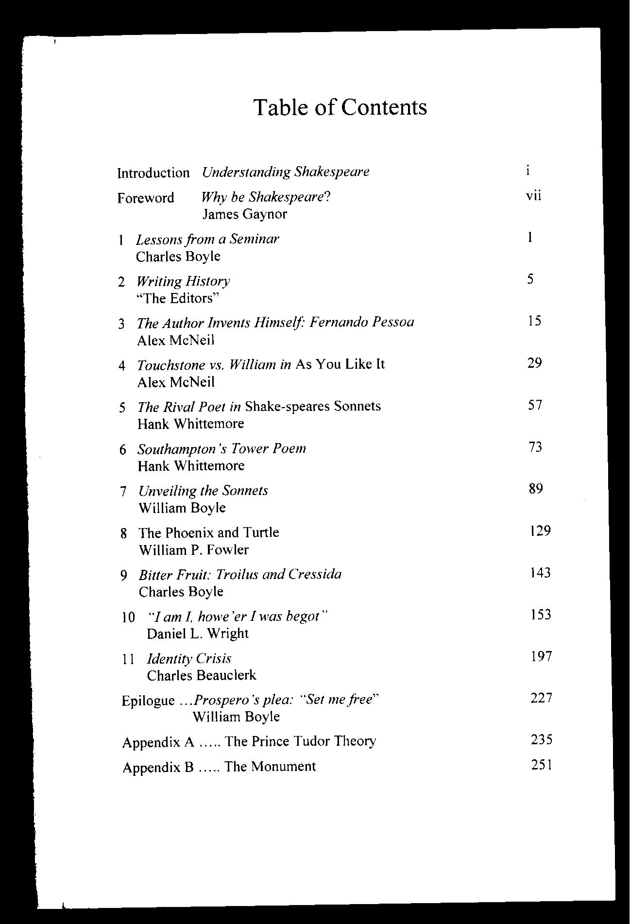 “Edward Earle of Oxford, the Lord Buckhurst, Henry Lord Paget, the noble Sir Philip Sidney, M. Edward Dyer, M. Edmund Spenser, Master Samuel Daniel, with sundry others…” Curiously, he does not list “Shakespeare.”