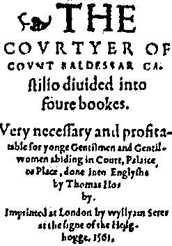 The Courtier, published in 1528, attempts “to refashion the medieval ideal of the chivalrous knight and to fuse it with the Renaissance virtues of learning and grace,” James Oscar Campbell writes in The Reader’s Encylopedia of Shakespeare (1966), adding that Shakespeare “may have derived the ‘merry war’ of Beatrice and Benedick in Much Ado About Nothing from a similar battle in The Courtier.”